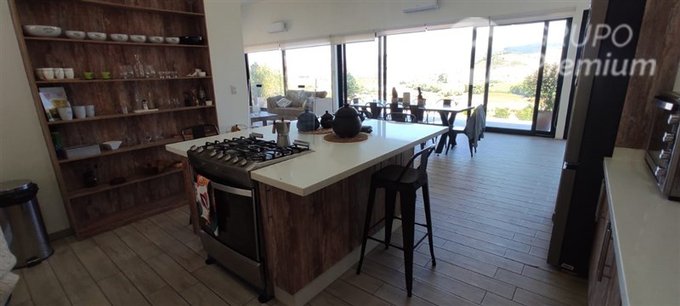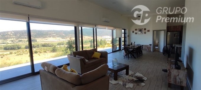 Se vende Parcela de 9.600 Mt2 en Condominio, ingreso controlado, con hermosa y amplia casa de 180 Mt2 construidos, estilo Mediterráneo, año de construcción 2023, totalmente amoblada a la medida, con una gran terraza que ofrece vista panorámica hacia un bello valle hermoso, para disfrutar de la naturaleza a su alrededor, que invita a la tranquilidad, confort y privacidad absoluta con todas las comodidades.