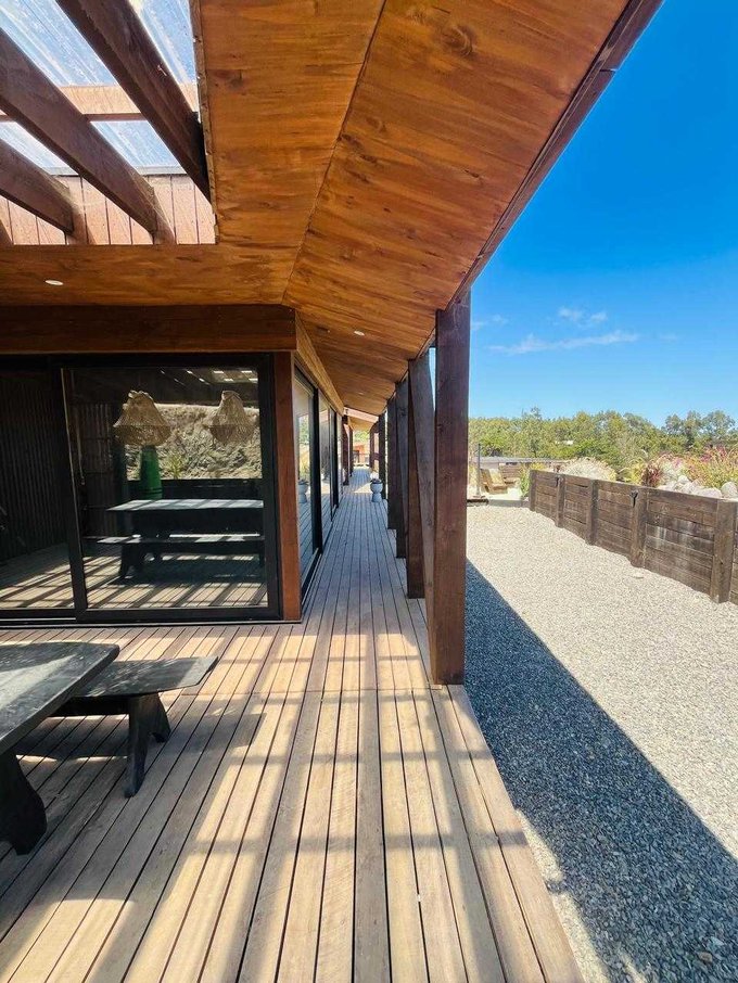 Esta elegante casa de 140 m redefine la comodidad con sus tres espaciosos dormitorios y tres baños, diseñados para el máximo bienestar de sus huéspedes. La comodidad es primordial, y aquí, cada vehículo encontrará su espacio con cuatro prácticos estacionamientos, complementados por una bodega que añade funcionalidad al hogar.