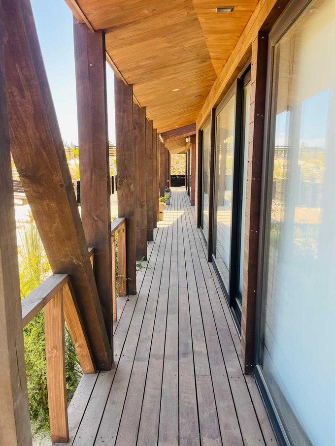 Ubicada en uno de los condominios más exclusivos y consolidados de Pichilemu, la casa combina arquitectura contemporánea, alto estándar constructivo y un emplazamiento privilegiado con vistas abiertas al mar, atributos altamente valorados por el mercado de segunda vivienda y arriendo premium.