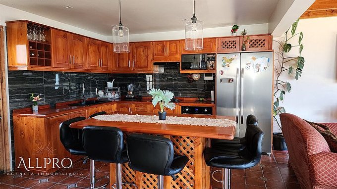 Descubre esta hermosa casa de construcción sólida en primer piso, ubicada en una de las mejores zonas de Pichilemu. La casa principal, de 112 m, cuenta con un amplio living-comedor, moderna cocina amoblada con isla, 1 dormitorio en el primer piso, 1 baño por terminar y 3 dormitorios adicionales con baño en el segundo piso.