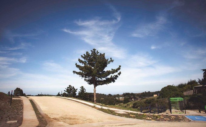 Sector de áreas verdes comunes, en donde está ubicada la terraza mirador y los juegos de Niños; Circuito de Calistenia, Skate Bowl, Sendero del Agua y Mirador Laguna El Piure.
