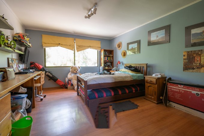 Se trata de una construcción aislada de un piso, edificada en albañilería reforzada, con diseño arquitectónico personalizado y en buen estado de conservación. La superficie construida aproximada destinada a la vivienda es de 360 Mt2, y su distribución interior contempla: Hall de acceso, living y comedor independientes, cocina amoblada mas comedor diario, lavadero y área de servicio, sala de estar, cuatro dormitorios, dos de ellos en suite, tres baños completos, bodega, amplio antejardín con acceso vehicular para al menos 10 vehículos, patio posterior con terrazas, piscina, dos quinchos, árboles frutales y riego automático. Todos los dormitorios cuentan con closets incorporados, y el dormitorio principal dispone de walk in closet. En conjunto a la vivienda fue construida una oficina (actualmente habilitada como local comercial), ambos con permiso de edificación aprobado por 270 Mt2, pero sin recepción final (permiso en tramite). Además, existen recintos adicionales (sala de estar, dormitorio con baño y bodega aproximadamente 90 Mt2).