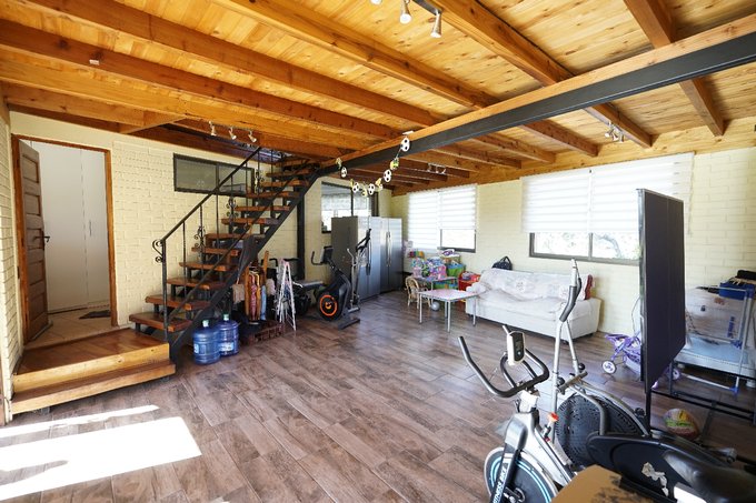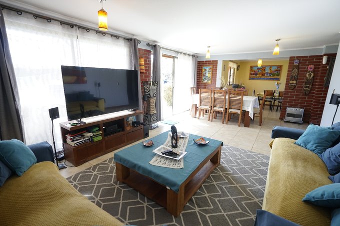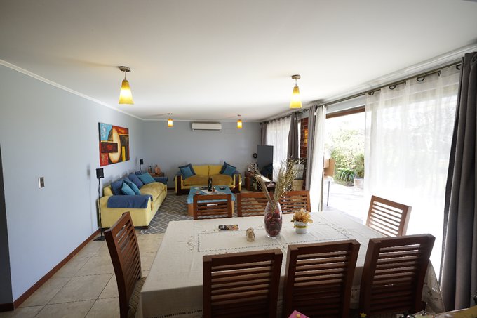 La casa se divide en dos sectores, el sector oriente cuenta con comedor, sala de estar, amplia cocina con comedor de diario, 4 dormitorios siendo uno en suite con walk-in closet, 2 baños, estudio u oficina, terraza y 4 estacionamientos. El sector poniente cuenta con comedor, sala de estar, amplia cocina con comedor de diario, 4 habitaciones siendo una suite con walk-in closet, 2 baños, terraza y 2 estacionamientos. Esta propiedad brinda espacios amplios para toda la familia o invitados. Además el inmueble cuenta con lavandería, quincho, bosca, aire acondicionado, estacionamiento para visitas, área de juegos infantiles, área de eventos, patio amplio con espacios verdes ideales para relajarse al aire libre, bodega con baño y canil en el exterior.