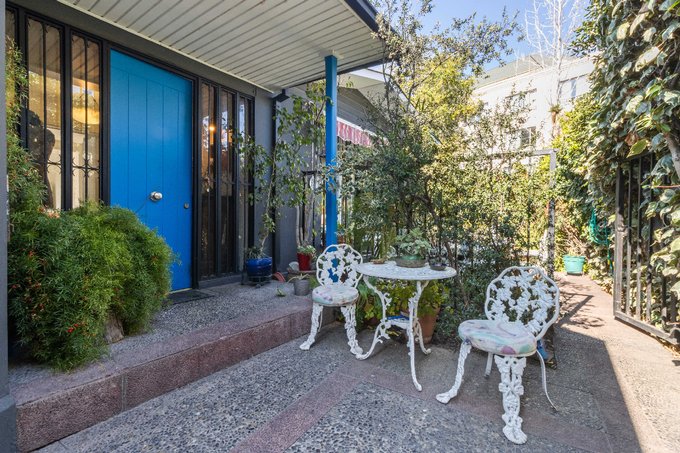Es una casa muy discreta, de 1 solo piso, ubicada en una calle tranquila. Su emplazamiento en el terreno deja un gran patio posterior cuya vegetación cubre todo el perímetro.