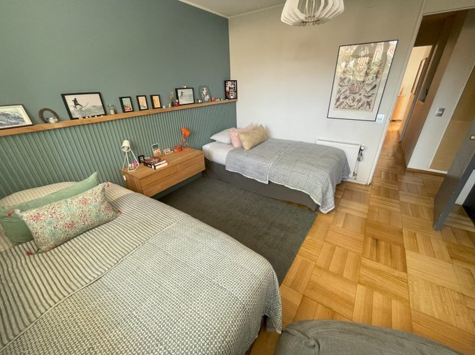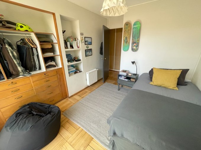 Dormitorio de servicio transformado en oficina, escritorio.