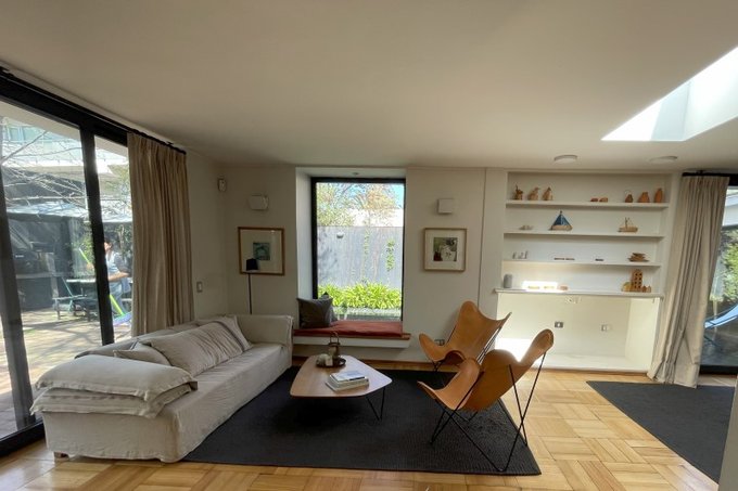 Casa remodelada estilo moderno, grandes ventanales.