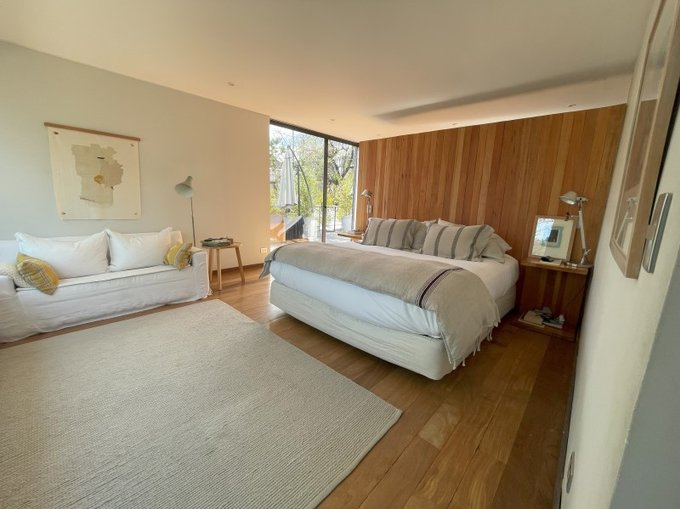 Segundo piso completo para el dormitorio principal, con baño en suite y walk in closet de gran tamaño. Salida a terraza, la que ademas tiene una escalera que conecta con la terraza y patio del primer piso, hacia el sector de la piscina.