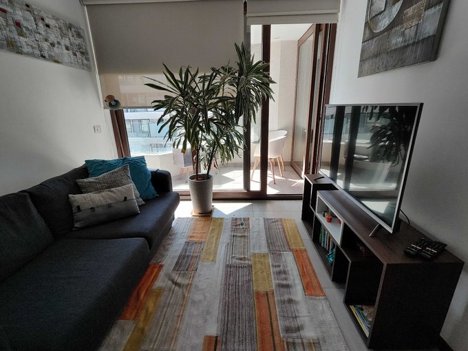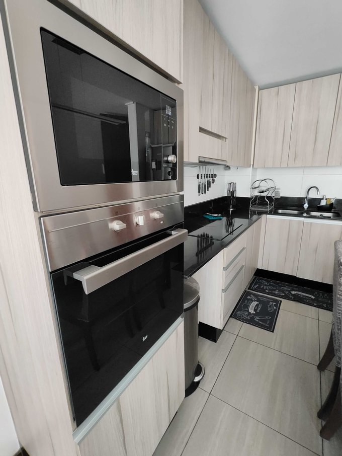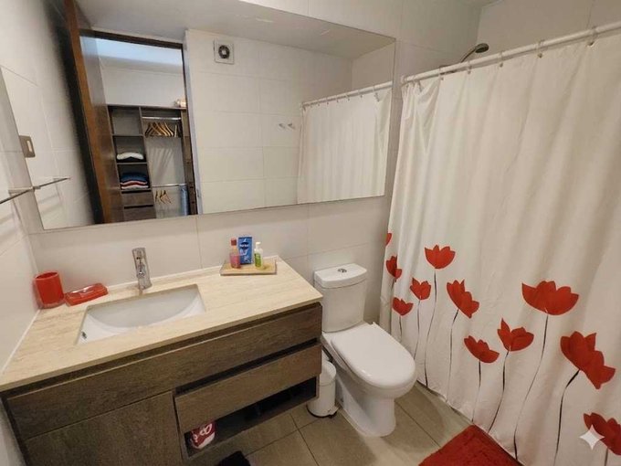 Completamente Amoblado: Refrigerador, lavadora, microondas, camas, veladores, sofá, mesa comedor con sillas, mesa centro, Racks para TV, etc.