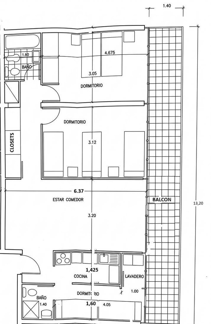 Originalmente 3 dormitorios, hoy adaptado a 4 habitaciones para maximizar ingresos. Importante: la división del cuarto dormitorio (ex living) es completamente reversible, permitiendo volver a un formato tradicional sin intervenir el piso de parquet original.