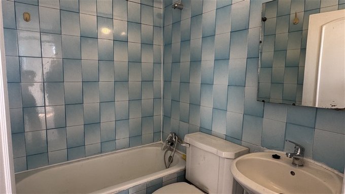 Baño completo, con tina, wc, lavamanos y extractor de aire. Piso vinilico nuevo.