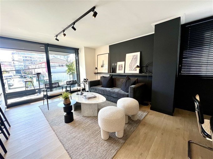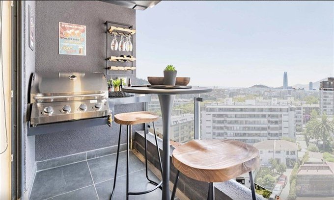 Moderno departamento en Venta en Providencia de 2 habitaciones, 2 baños, living comedor amplio, finas terminaciones, cocina integrada, terraza con parrilla.
