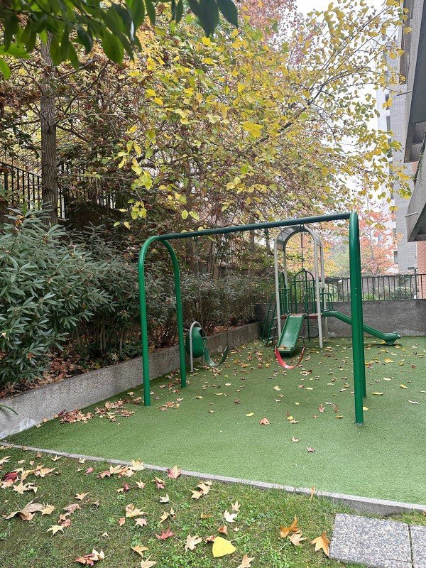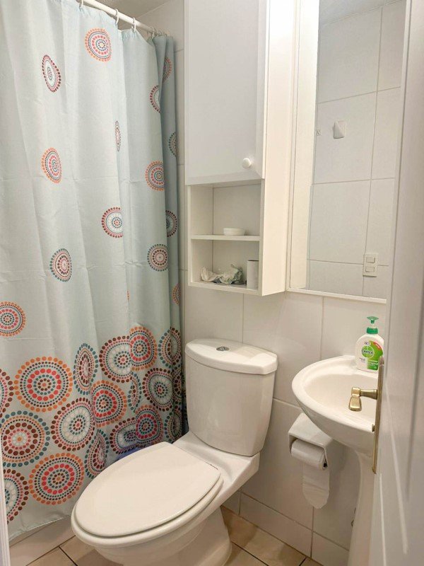 El edificio es moderno (2007) y cuenta con piscina, áreas verdes con espacios para compartir, juegos infantiles, conserjería, entre otros.