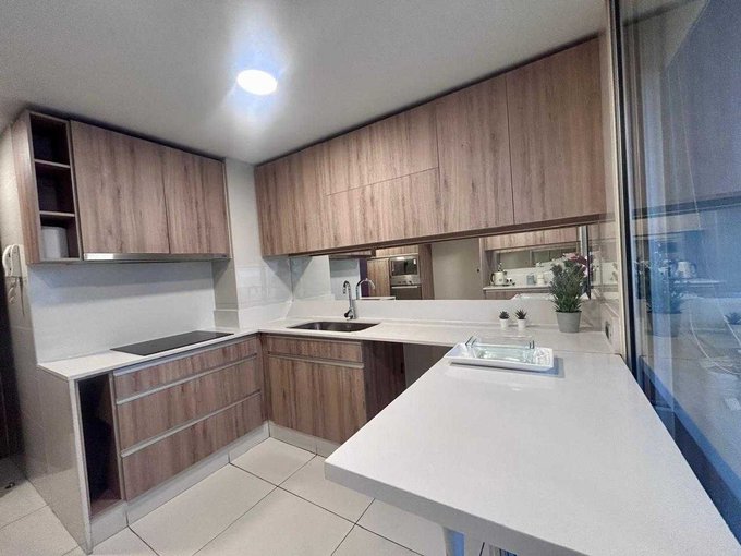 Cuenta con un amplio hall de acceso, living comedor con salida a amplia terraza. Cómoda cocina con cubiertas de cuarzo, encimera eléctrica, horno microondas y horno eléctrico empotrados, amplia logia independiente y baño de visitas.