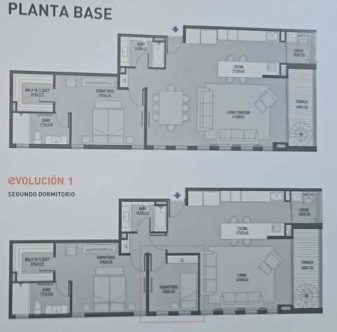 Dentro de la Planimetria del dpto, permite la construcción de un 2ndo dormitorio (ver imágenes con la proyección)