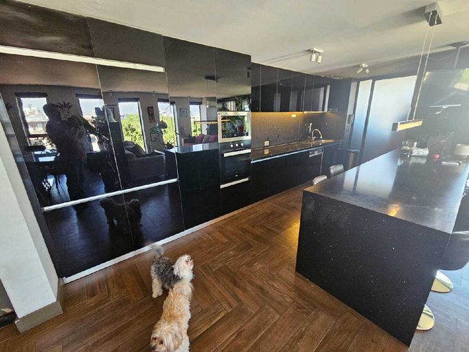 Area de Living Comedor ENORME con cocina integrada con cubiertas de cuarzo negro stellar con suite de electrodomésticos TEKA con refrigerador panelable integrado. Logia cerrada y aparte.