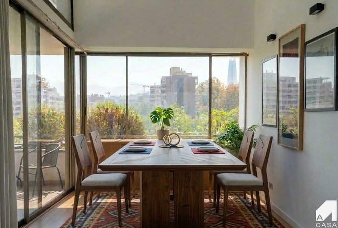 Imperdible oportunidad. Departamento duplex de orientación nor oriente, ubicado en 6to y 7mo piso, de edificio proyectado por el reconocido arquitecto Teo Fernández; compuesto por 7 pisos, 2 subterráneos, 2 ascensores, conserjería 24/7 y estacionamientos de visita, emplazado en la vereda poniente de la calle, entre calle Bustos y Av. Francisco Bilbao, a pasos de la estación de metro Inés de Suarez en la Plaza Pedro de Valdivia.