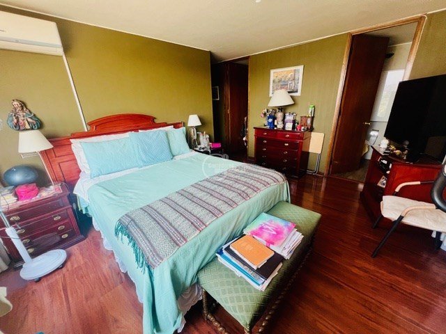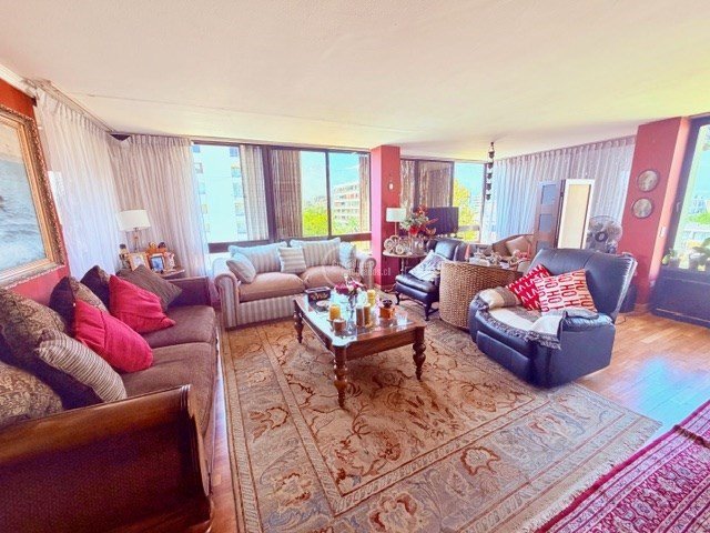 Todas las piezas y recibos dan a una amplia terraza con linda vista. El departamento tiene gran cantidad de closets. Piso de madera y en algunos sectores alfombra