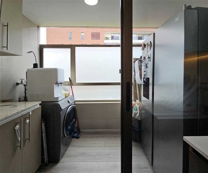 Cocina remodelada y full equipada con encimera eléctrica, cubierta de cuarzo y una logia de buen tamaño.
