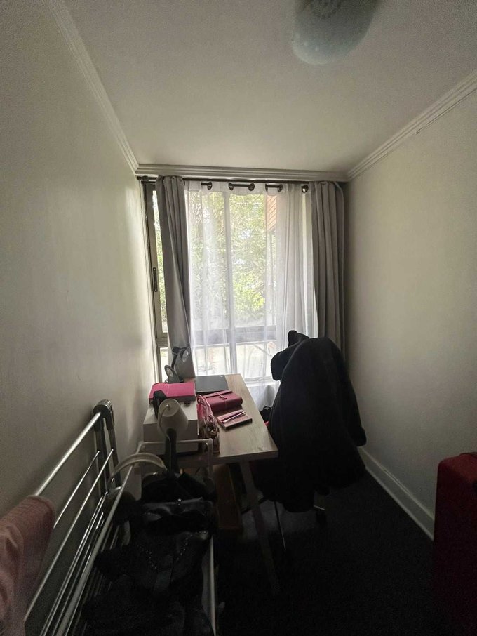 Dormitorio secundario con closet, con espacio para cama de plaza y media.