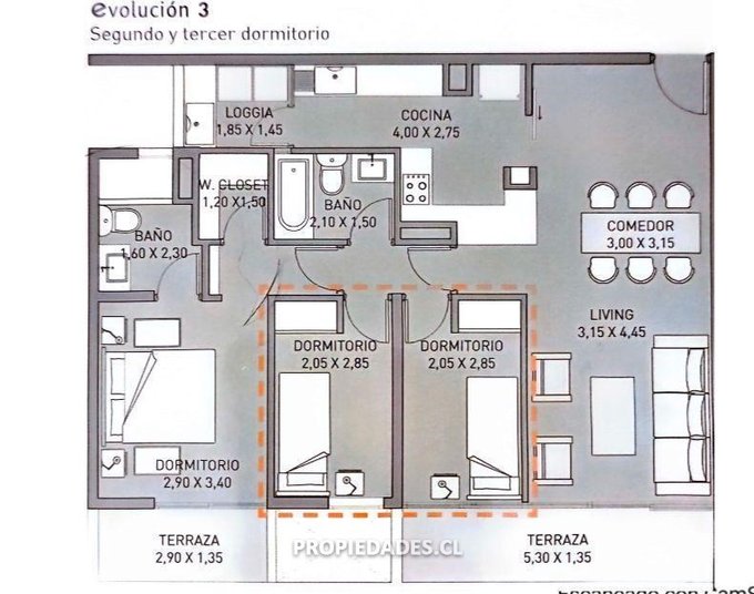Comodidad Completa: Goza de dos baños completos, un amplio living-comedor y una excelente cocina semi-integrada, pensada para la vida moderna con espacio suficiente para un refrigerador de dos puertas y una muy buena loggia.