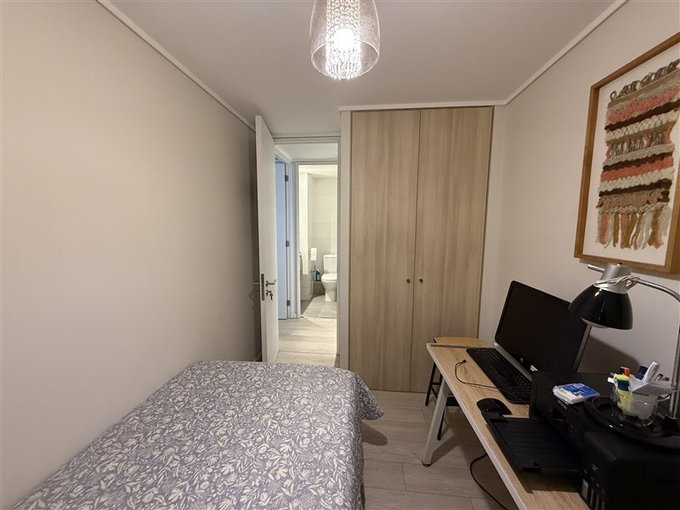 Departamento nuevo de 75 m2 64 m2 útiles y 11 m2 de terraza cerrada. Casi sin uso, 2 dormitorios, 2 baños, 1 estacionamiento cubierto y 1 bodega junto a él. El departamento fue entregado en agosto pasado, se vende por traslado.