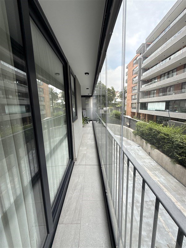 El departamento se desarrolla en 2 áreas. En el área común nos encontramos con una cocina totalmente eléctrica integrada al living comedor con salida a una larga terraza cerrada.