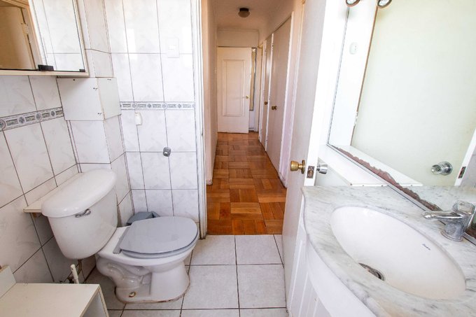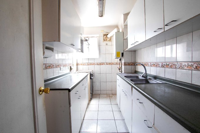 escritorio o sala de estar, 3 dormitorios, 2 amplios baños con ventana, amplia cocina, pieza y baño de servicio, closet en pasillo, ideal para ropa blanca o despensa, bodega. Pisos de cerámica en cocina y baño. Ventanas de aluminio. SIN ESTACIONAMIENTO.
