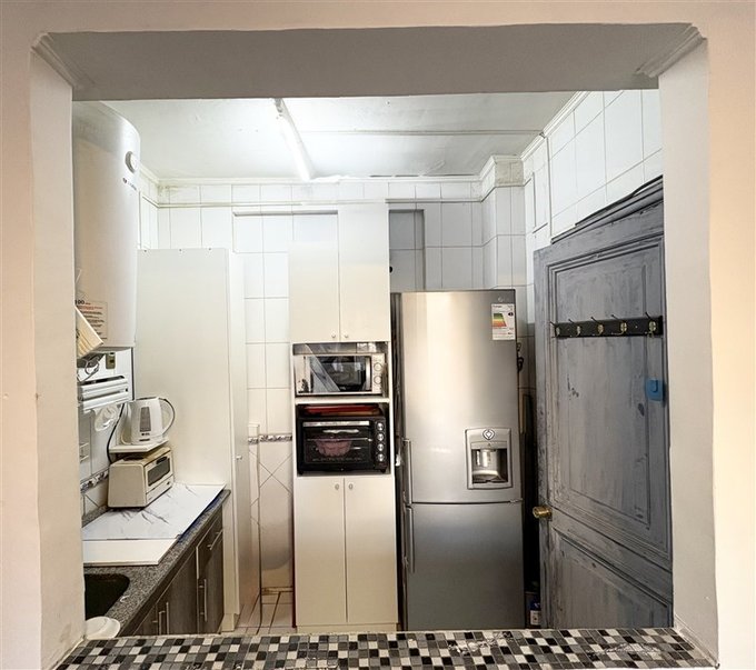 Cocina americana con gran espacio para refrigerador.