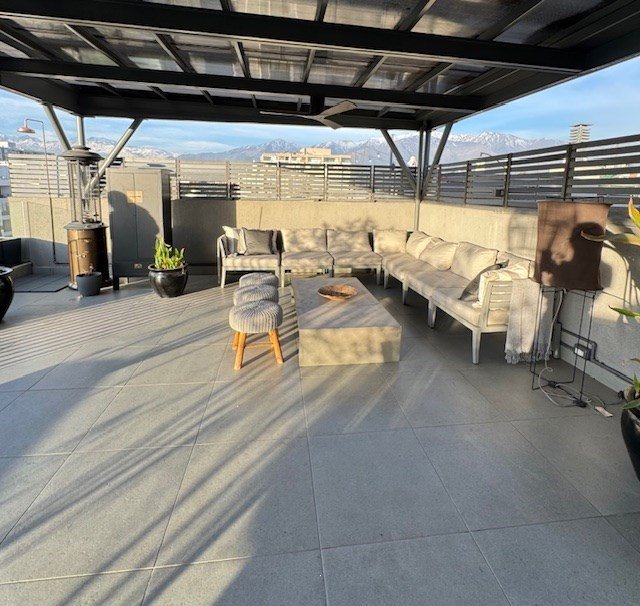 Gran terraza con quincho full equipada, con inmejorable vista panorámica.