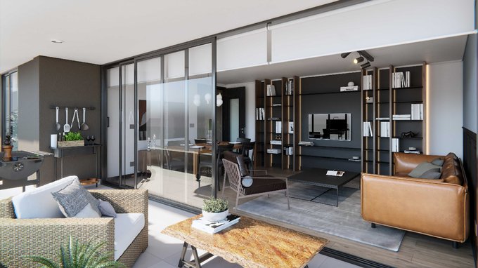 Amplio hall de acceso, puerta que separa los espacios, Living y comedor, con salida a amplia terraza, ventanales de triple apertura que conecta con la terraza formando un espacio.