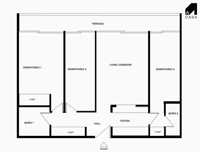 Living comedor, con cocina semi integrada, dormitorio y baño de servicio amplio, 2 dormitorios y 1 baño.