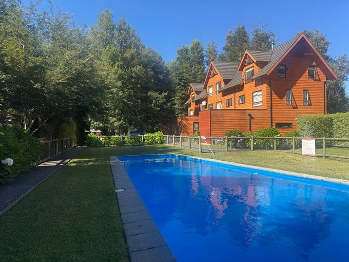 Esta es una buena oportunidad para invertir en Pucón: casa de 5 dormitorios y 4 baños a solo 3,5 km de Pucón. El condominio cuenta con piscinas , senderos, canchas de tenis y multicanchas , salón de eventos y quinchos.