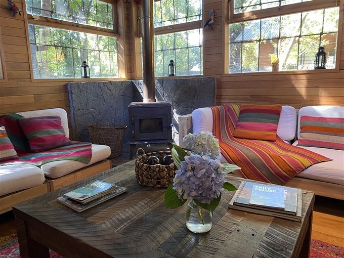 La casa se calefacciona a pellet y leña.