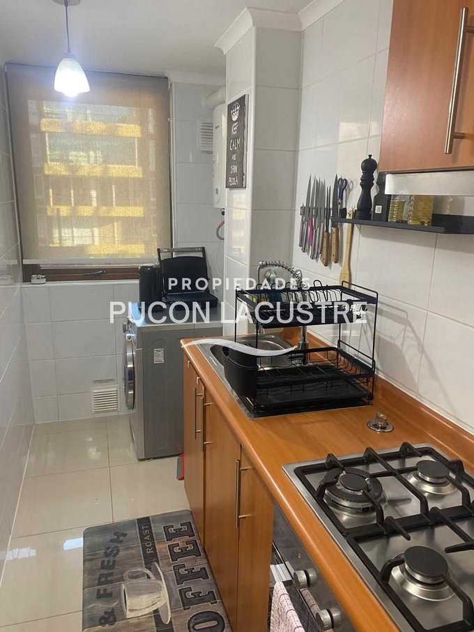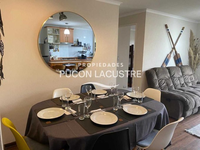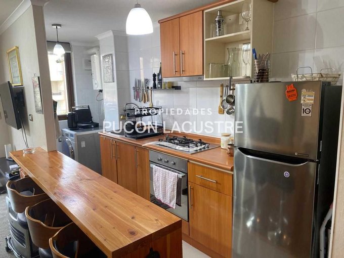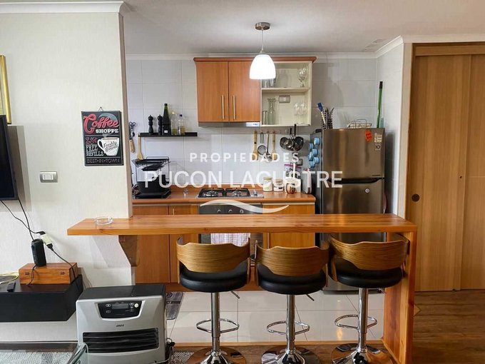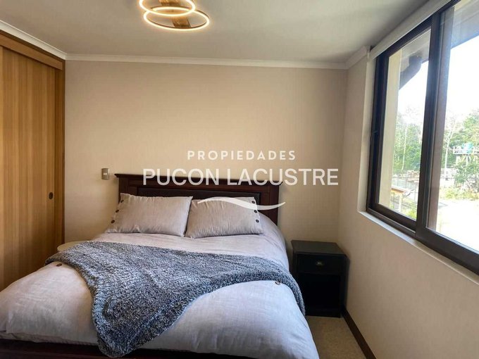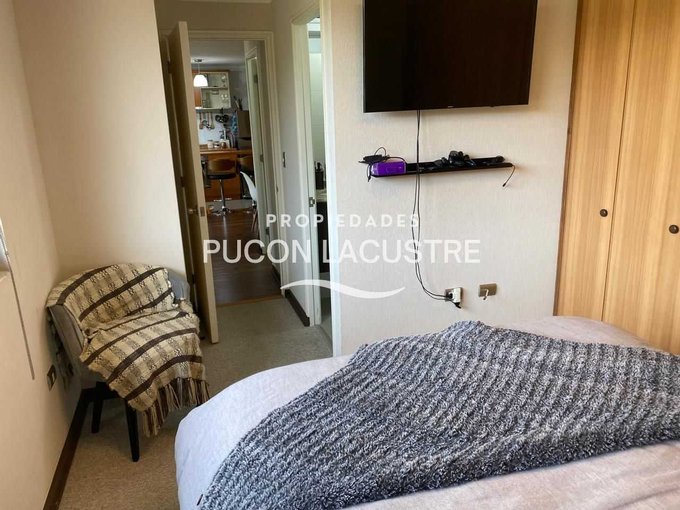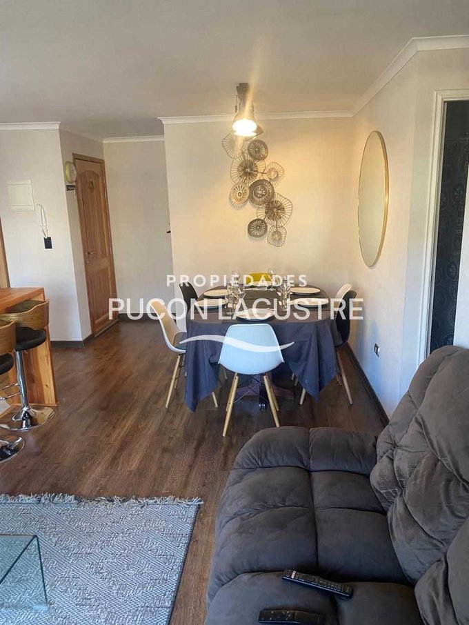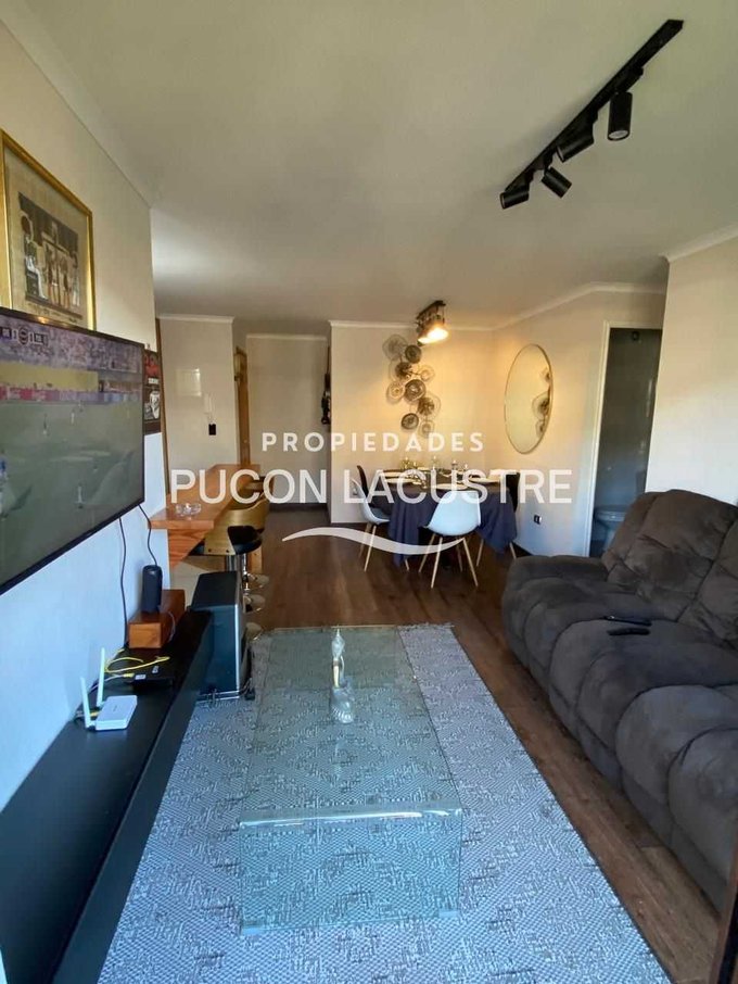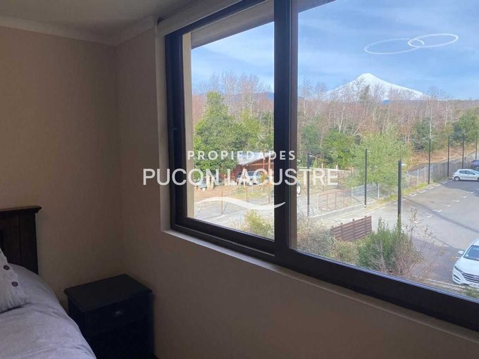 No pierdas la oportunidad de adquirir este hermoso departamento en venta en el Condominio Parque del Volcán, ubicado en camino subida al Volcán Km 1,2, en la comuna de Pucón. El departamento se encuentra en una zona muy tranquila y cercana a servicios básicos como ser supermercados, colegios y áreas verdes y con un expedito acceso al centro de Sky del Volcán Villarrica. Este acogedor departamento cuenta con 2 dormitorios, 2 baños, balcón y 58 m2 construidos, además de estacionamiento, y bodega. Perfecto para disfrutar de unas increíbles vacaciones o como inversión para arrendar. Su distribución es práctica y moderna, ideal para disfrutar de la tranquilidad y el entorno natural que ofrece Pucón. Cuenta con una muy buena aislación con ventanas de termo panel y PVC y esta completamente amoblado.