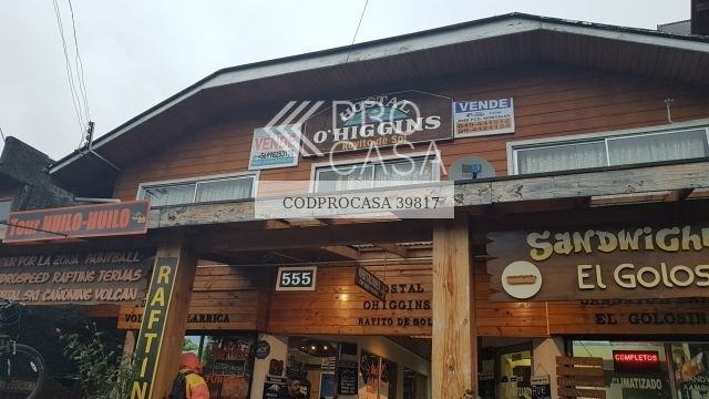 Hostal y locales comerciales en pleno centro de Pucón, 312 M2 construidos en 3 pisos con 12 habitaciones 11 baños 2 locales a la calle de 35 M2 cada uno. Recepción municipal y resolución sanitaria, patente de hostal . Se vende con todo su equipamiento.