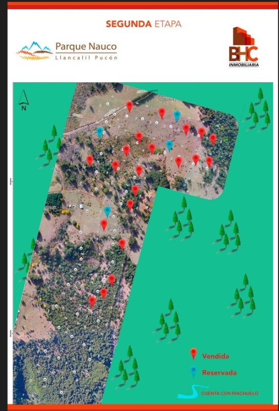 VENDE PARCELA PUCON, ENTORNO NATURAL Y TURISTICO, PARCELA PLANA DE 5000 M2, sector LLancalil a 40 kilómetros de Pucón por el camino Internacional hacia las termas del Huife, 8km de las termas del Huife y otras del sector , 20 km. Del Lago Coburga, a 5 minutos de la Laguna LLancalil, sector de pesca y náutica sin motor, hermosa vista, con factibilidad de luz y abastecimiento de agua por vertiente, señal de internet, buena conectividad, flora nativa. La Parcela cuenta con rol propio. se entrega con proyecto de Arquitectura de casa de 74 m2, proyecto para instalación de alcantarillado a través de fosa sanitaria y proyecto de agua por impulsión