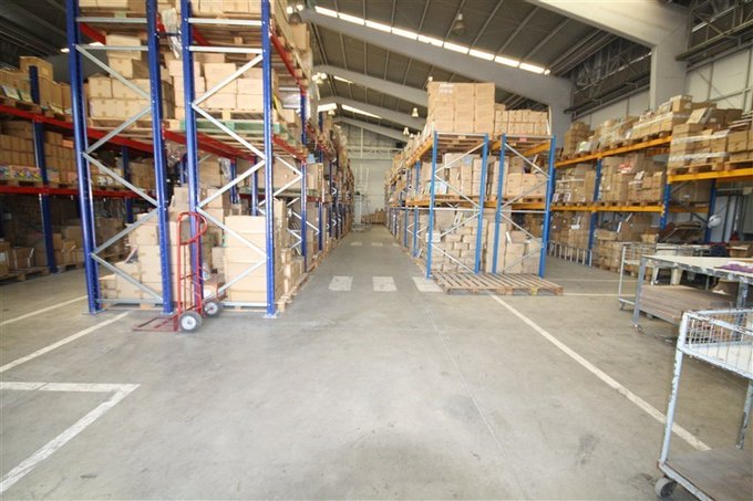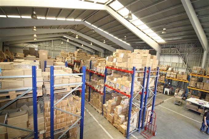 Bodega con luminarias de alta efectividad para manipulación de cargas y embalajes.