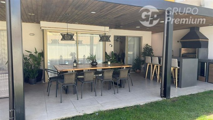 Se destaca el exterior de la vivienda , una hermosa piscinna , quincho con frigobar y sistema de audio integrado mas disponibilidad de conexion de telon y proyector , pasto con riego automatico y arboles frutales