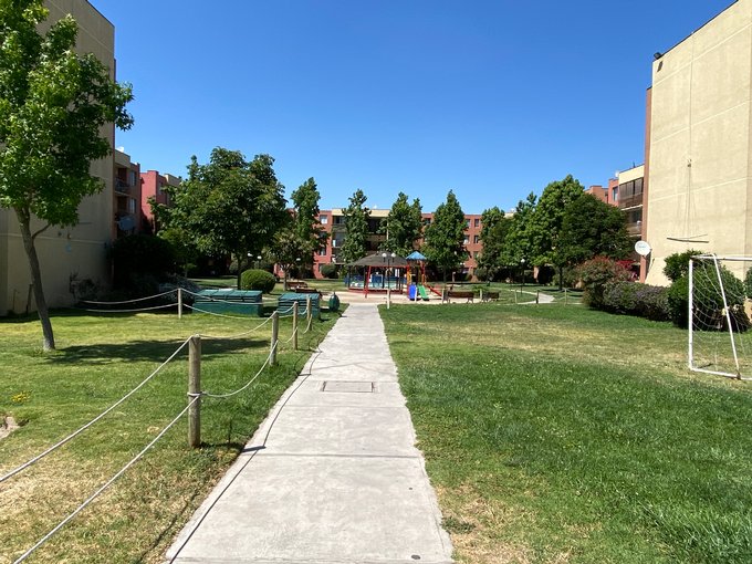 El condominio cuenta con conserjeria 24 hrs, gran parque central con juegos para niños y piscina, amplias areas verdes para disfrutar del espacio o sacar a pasear a tus mascotas, estacionamiento para visitas al interior del condominio. Sector de alta plusvalia, muy cercano a supermercados (casi en la esquina) colegios, consultorios, ferias libres, a 100 mts de Av. La Travesia donde esta todo el transporte publico, a solo minutos del metro Barrancas. a 100 mts de Claudia Arrau, acceso inmediato a las autopistas, a 10 minutos del aeropuerto. Excelente lugar para vivir en familia.