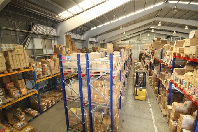 Bodega con luminarias de alta efectividad para manipulación de cargas y embalajes.