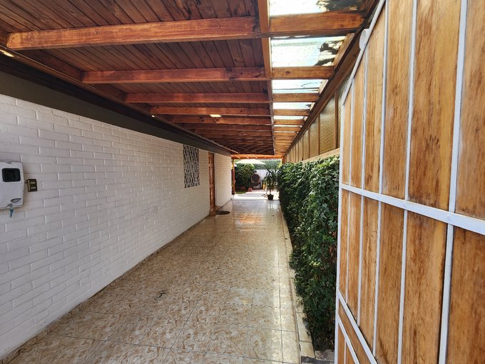 Pasillo lateral techado y cerrado con acceso desde el antejardín y la cocina