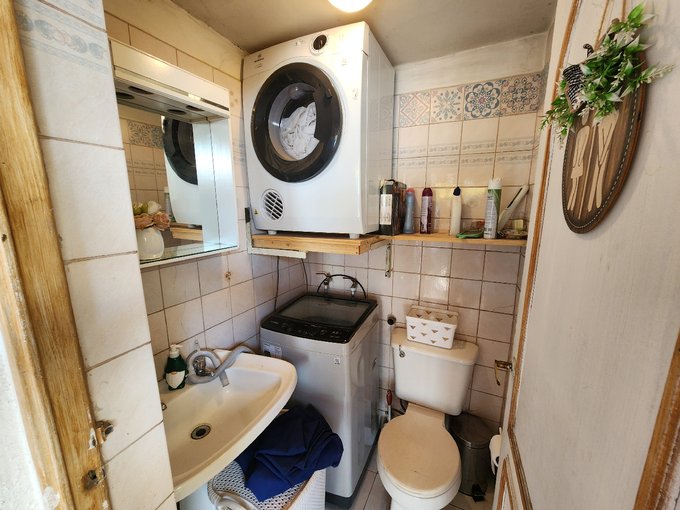 1 baño exterior en patio, ideal para visitas, con espacio para lavadora y secadora
