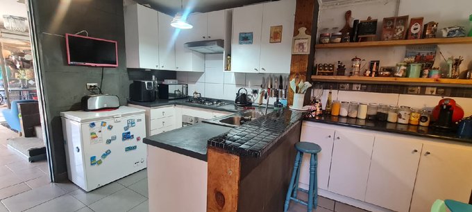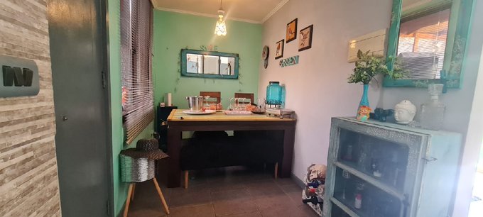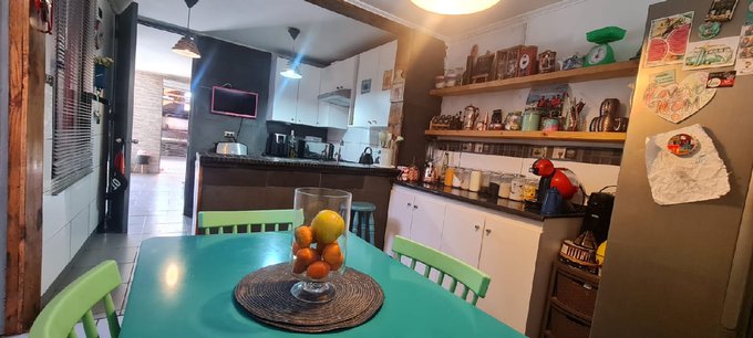 En el primer piso, living comedor separados, cocina completamente equipada con comedor de diario, sala de estar, baño de visitas, patio trasero con quincho, horno de barro techado, con terraza, arboles frutales, bodega con coneccion para lavadora, estacionaminero para 2 vehiculos.