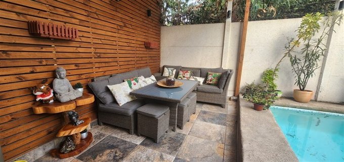 Amplia Piscina de 8 x 4 mts, patio con pasto natural