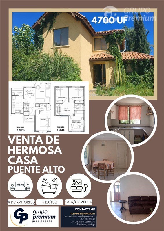 No pierdas la oportunidad única por el valor del mercado adquirir esta vivienda ideal para tu familia en una de las zonas más exclusivas de Puente Alto. Contáctame para más información y coordinar una visita. Te esperamos.74832YBM