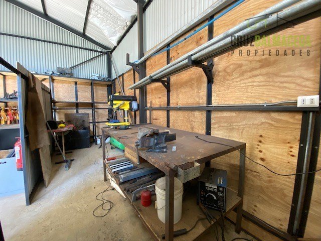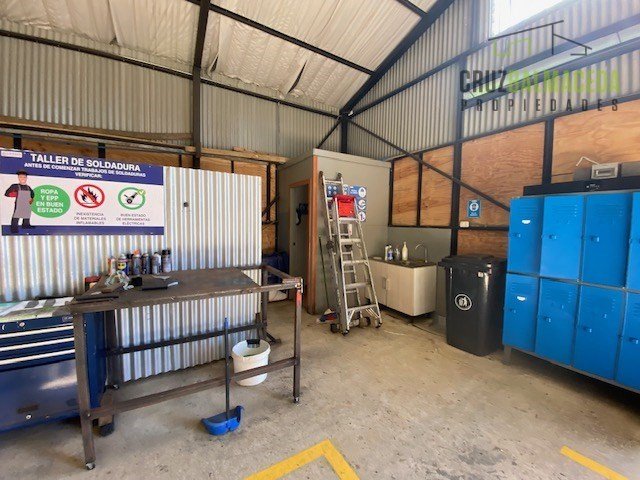 - Bodega de 120 m2 con 3 metros de altura, forro de terciado, radier de cemento, estantería completa, baño habilitado y lavaplatos.