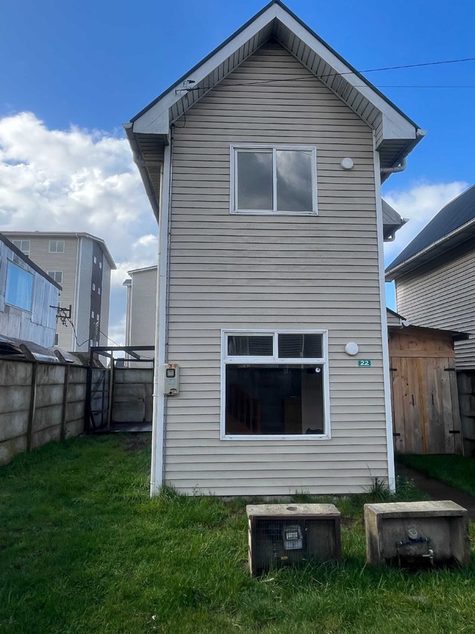 La casa es de dos pisos, construida sobre radier de cemento y paredes de vulcanita.