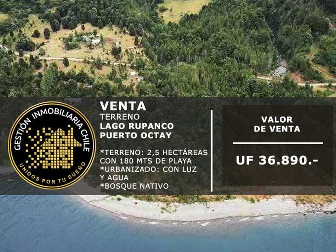 Se vende exclusivo terreno urbanizado, ubicada entre sector puerto el buey y playa gaviota, del lago rupanco. Cuenta con playa de 180 m. De extensión, entre vertientes. Además tiene luz electrica y agua. Con acceso directo por ruta u-91. Terreno único en el sector, de alta plusvalía, ideal para poyecto hotelero, turístivco, lodge o proyecto inmobliario. Se encuentra por accesp por el lago frente a termas de lago rupanco.