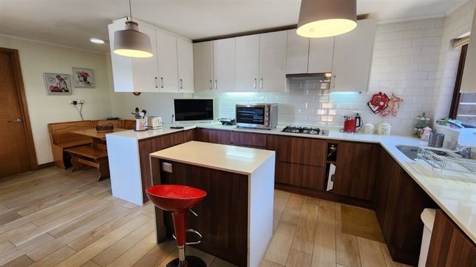 Cuenta con calefacción central con caldera a pellet, termopanel en todos los recintos, terminaciones de primera calidad, cocina moderna completamente equipada, portón automático, entre otros atractivos de detalles inmobiliarios.
