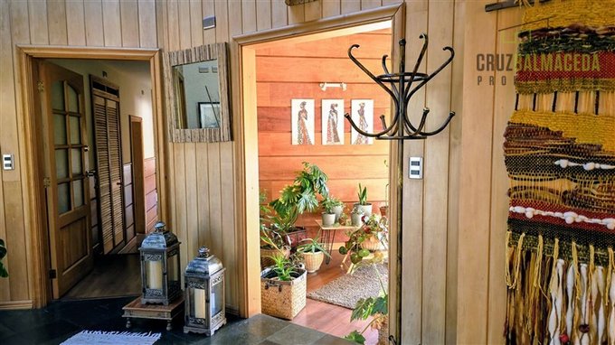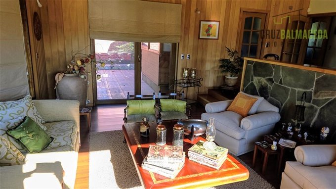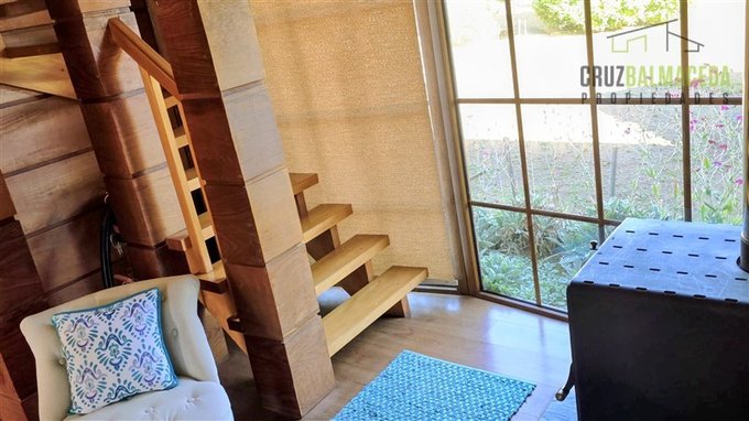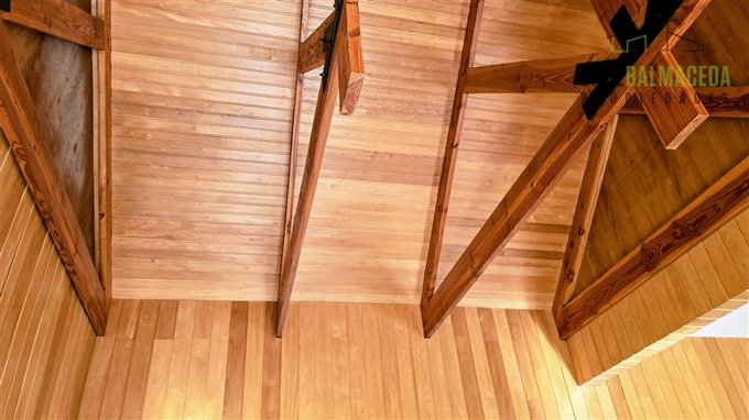 Living y comedor separados, revestidos en madera de mañío